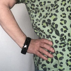For Sale is Vintage Black Enamel Silver Tone Metal Hinged Oval Shape Bangle Fashion Jewelry Bracelet.