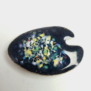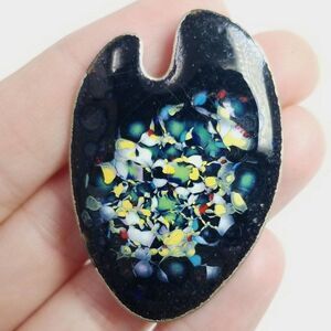 Vintage Black Enamel with Colorful Speckles Artist Palette Shape Brooch Pin