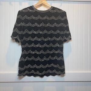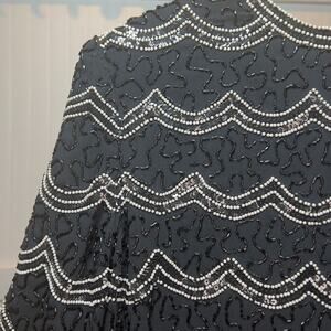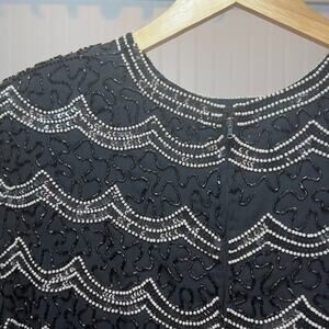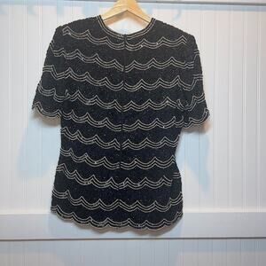 Vintage Black Evening Formal Beaded Scalloped Edge Glamour Party Blouse Elegant
