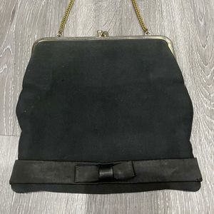 Vintage Black Evening Bag Bow Accent 7”w x 7.5”h x 1” d