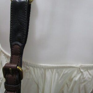 Shoulder drop: 24". Bag appears in great condition. This does not have a key so is not from the line that does. Strap width is approx. 1.25".with brown accents.