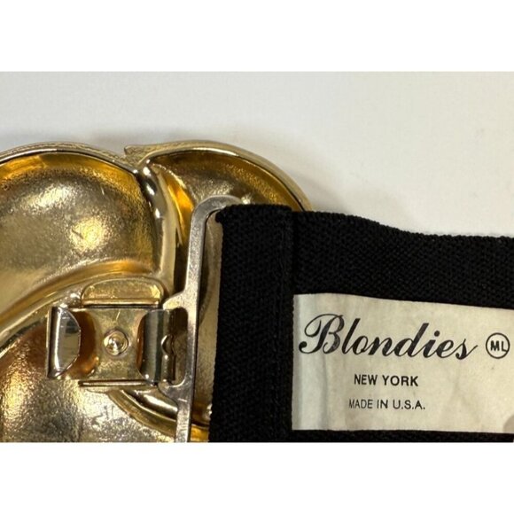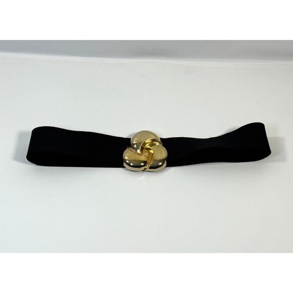 Vintage Black Fabric Stretch Belt With Gold Knot Buckle Design For Women S/M