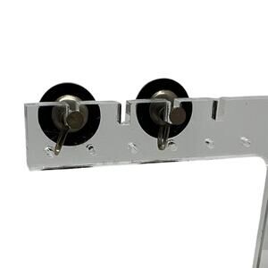 Striking pair of vintage screw back earrings featuring large round black faceted glass stones in a sleek silver tone setting. The faceted glass catches the light beautifully, creating subtle dimension and sparkle. These sophisticated statement pieces showcase a classic mid-century modern aesthetic with their bold geometric form and clean lines. The screw back mechanism is in good working condition, providing secure and comfortable wear. The sleek silhouette and timeless black and silver color combination make these versatile earrings perfect for both everyday wear and special occasions. They offer a touch of understated elegance that complements both vintage and contemporary fashion styles. Ideal for collectors of vintage costume jewelry or anyone who appreciates classic mid-century design.