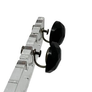 Vintage Black Faceted Glass Button Earrings Screw Back Silver Tone Mid Century