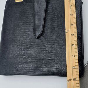 Compact and stylish for daily essentials, this bag features a timeless design with gold accents and a faux lizard Croc embossed texture for added elegance. Very good condition