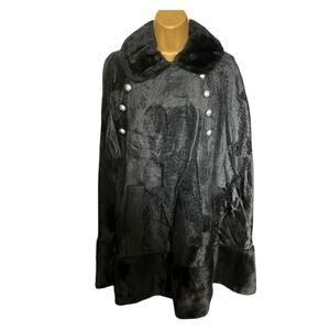 Vintage Black Faux Fur Cape Coat with Silver Buttons – Elegant Evening Wrap