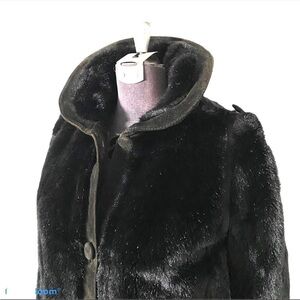 Vintage Black Faux Fur Coat Lilli Ann Suede Trim 60s Retro Womens Small Medium