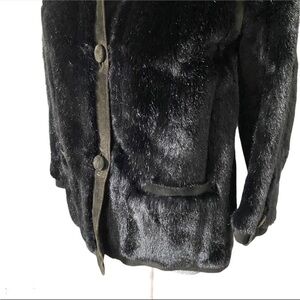 Vintage 60s Lilli Ann Black Faux Fur Coat Suede Trim London Leathers Womens Medium