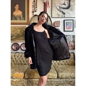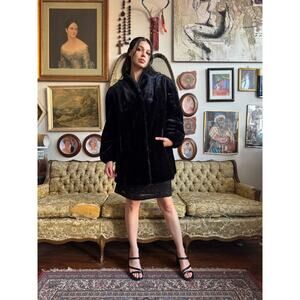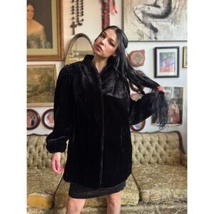 Vintage Black Faux Mink 40s Style Jacket by Outerlayers Ladies Size XL