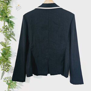 Vintage Black Faux Suede Blazer White Collar Womens Size 13/14《905》A
