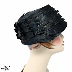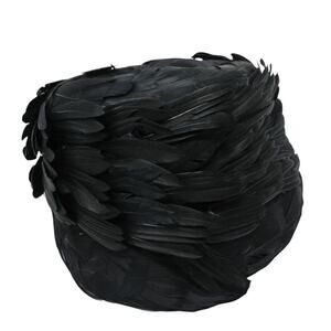 * Special Feature: Vintage Black Feather Cloche Hat. The feathers are arranged in a circular overlapping pattern.