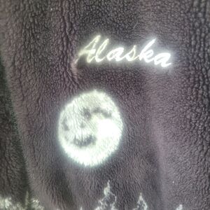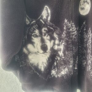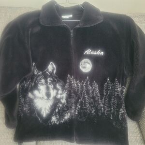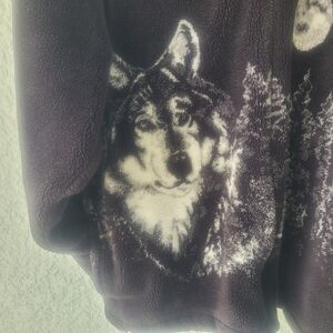 Vintage Black Fleece Jacket with Wolf Design Made In USA