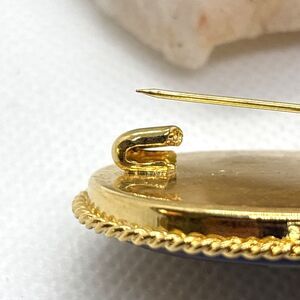 Vintage Black Floral Cameo Style Transferred Floral Design Pin Brooch Gold Tone