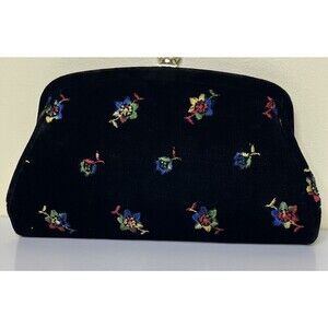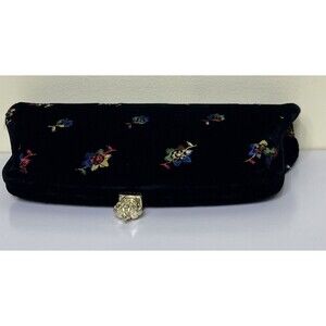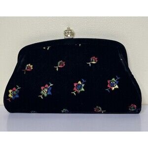 Vintage Black Floral Clutch Handbag Embroidered Flowers
