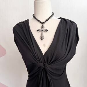 Vintage Black Front Twist Top, Goth Whimsigoth Grunge Indie Sleaze Medium