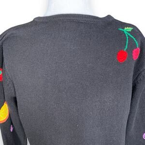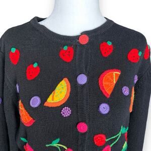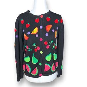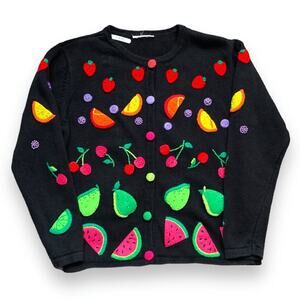 Vintage Black Fruit Knit Cardigan Sweater Colorful Crewneck Watermelon Cherry