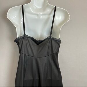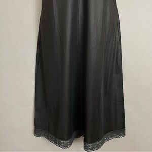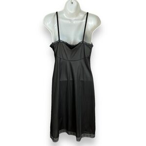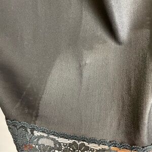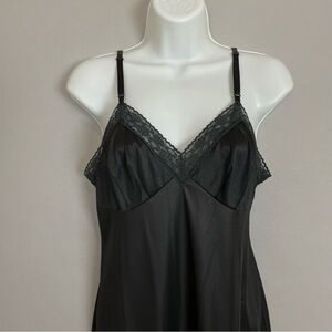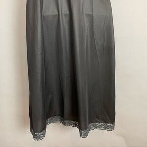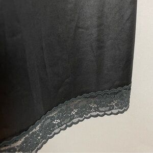 Vintage black full slip with lace along neckline and hem. Adjustable spaghetti straps.