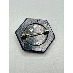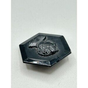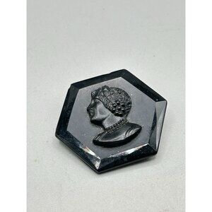 Vintage Black Glass Cameo Pin Brooch Hexagon Left Face Antique Mourning Jewelry