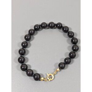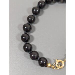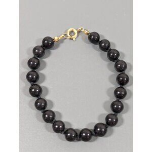 Vintage Black Glass Round 8mm Bead Knotted Bracelet Classic Retro 7 inches