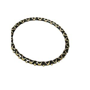 This black and gold enamel bangle bracelet adds sophistication to any outfit. Crafted with precision, its intricate design and color contrast make it a standout accessory. The bracelet's durable materials ensure longevity, while its lightweight nature offers comfort for extended wear. A timeless addition to any jewelry collection.