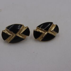 Vintage Black Gold Tone Oval Cross Clip On Earrings MCM Style 80s Statement