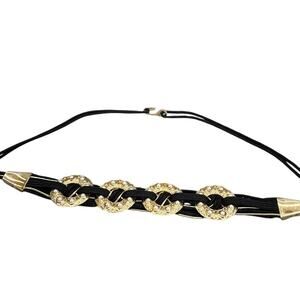 Vintage Black Gold Woven Braided Pearl Hammered Metal Concho Rope Belt Women