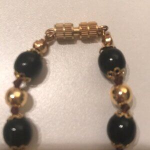 🖤✨ Vintage Black & Goldtone Murano Glass Beaded Necklace | 24”