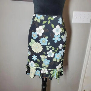 Vintage Black Green & Blue Floral Skirt by LunaChix / 90s Skirt / Y2K
