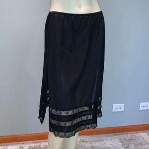 Vintage Black Half Slip Skirt Double Deep Side Slits Size Medium