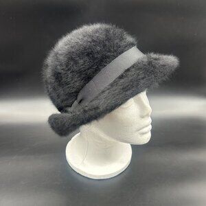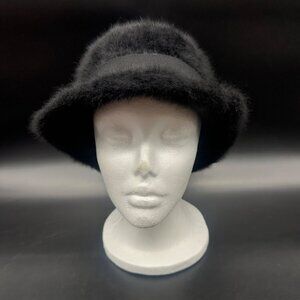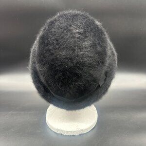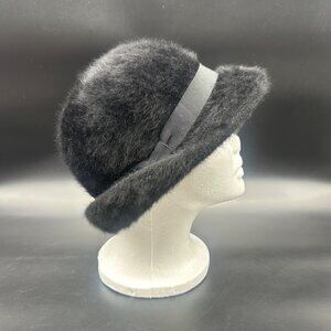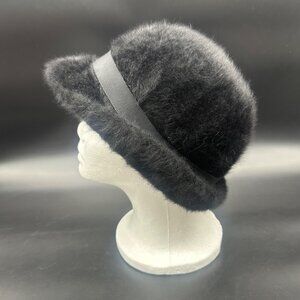 Vintage Black Hat 1970s Angora Rabbit Fur Ribbon Betmar France Ladies Winter