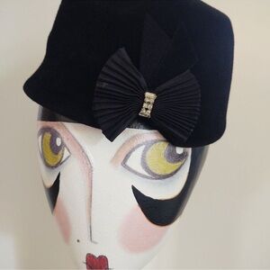 Elegant black hat with a stylish bow. Perfect for a classic look.
