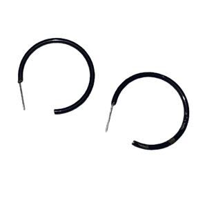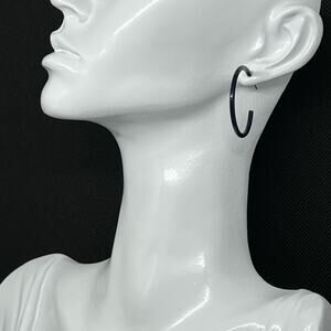 These vintage black hoop earrings feature a simple yet elegant design. The earrings measure approximately 1 inch in diameter and have a post backing for comfortable wear. The metal has a polished black finish, giving them a sleek, sophisticated look.