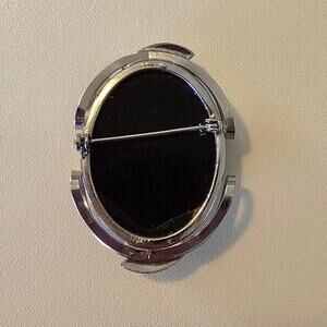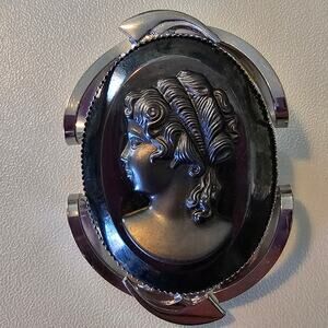 Vintage Black Intaglio Cameo Brooch with Silver Detail