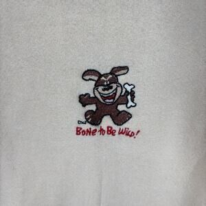 • Design: Cartoon dog with bone, “Bone to Be Wild” embroidery