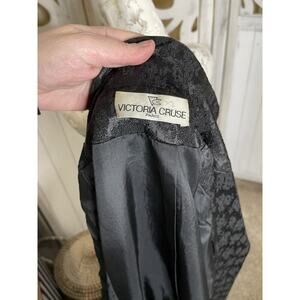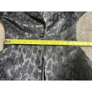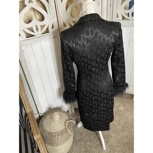 Vintage Black Jacquard Coat Jacket Faux Fur Trim Y2K Goth Whimsigoth Small