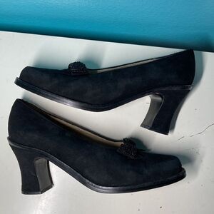 Vintage Black Kenneth Cole Heels Size 8.5 Leather & Suede with Beaded Bow