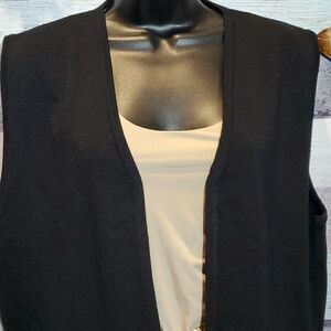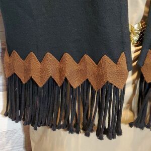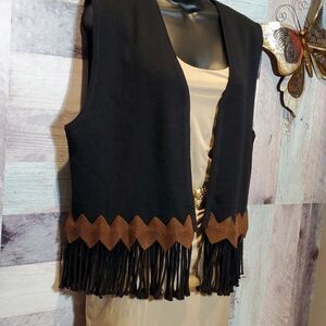 Vintage Black Knit Fringe Open Front Vest Bolero Sz L? 624