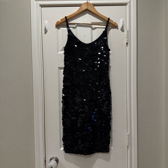 Vintage Black Label Mini Dress Women’s Sz 6 Black Large Circle Sequined Party