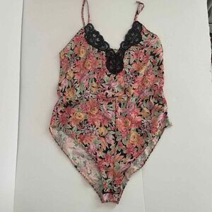 Vintage Black Lace Pink Floral Lingerie One Piece