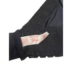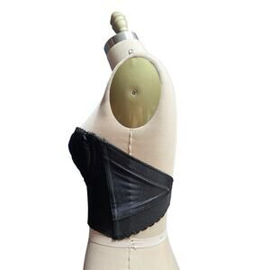 Vintage Black Lace Satin Backless Smoothie Strapless Bra 34B Corset Bustier