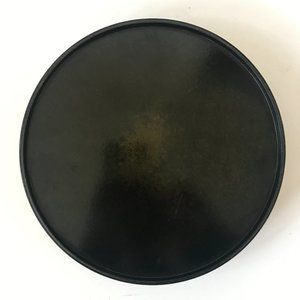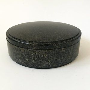Vintage Black Lacquer Round Lidded Box with Gold Pattern Details