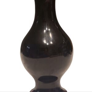 Vintage Black Lacquer brass vase with Abalone Mother of Pearl overlay