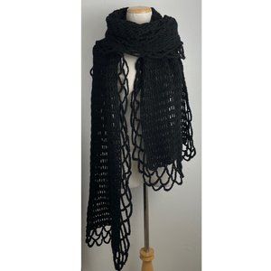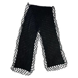 Vintage Black Lacy Edge Scarf Hand Crochet Shawl Wrap, 24" x 100" Yarn Shawl