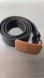 Shows usual wear including tarnishing of metal buckle and perhaps two owner-created prong holes in leather belt.