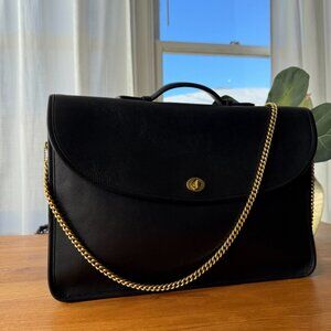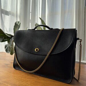 Vintage 1990s Coach Lexington 5265 Briefcase Bag, in black leather with brass details and chain strap; pre-1996 version.