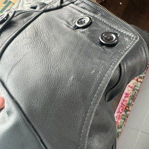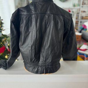 Amazing vintage condition black leather jacket. Slightly cropped, gathered waist and shoulder, true to size. Button closure, 2 exterior pockets. Brand: Tibon. No major signs of wear, no flaws.