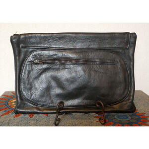Vintage Black Leather Envelope Strapless Unisex Clutch Bag 9" x 13" Boho Hippie