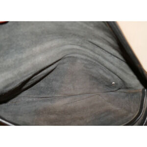 Crafted for both style and functionality, this vintage black leather clutch bag offers a timeless accessory for any ensemble. The solid black exterior is complemented by a soft suede lining, creating a classic color combination that pairs effortlessly with a variety of outfits. The roomy interior is thoughtfully designed with an inner divider and additional zippered compartments, ensuring your essentials stay organized and easily accessible. The bag's durable leather construction is accentuated by a matte finish that lends an understated, yet sophisticated look. Its rectangular shape and snap closure provide a sleek silhouette that's ideal for travel or casual use. With a versatile collection of accents such as front and back zippered compartments, this clutch is as practical as it is stylish, making it a perfect choice for those who appreciate both vintage charm and contemporary design. Great for art supplies as well.