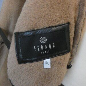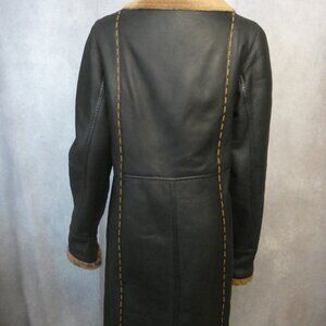 Vintage Black Leather Feraud Paris Trench Coat with Tan Lightweight Shearling Lining