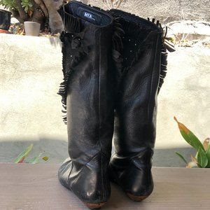 Vintage Black Leather and Suede Cowboy Boots with Fringe and Silver Studs. Recently re-heeled. Very comfortable!
